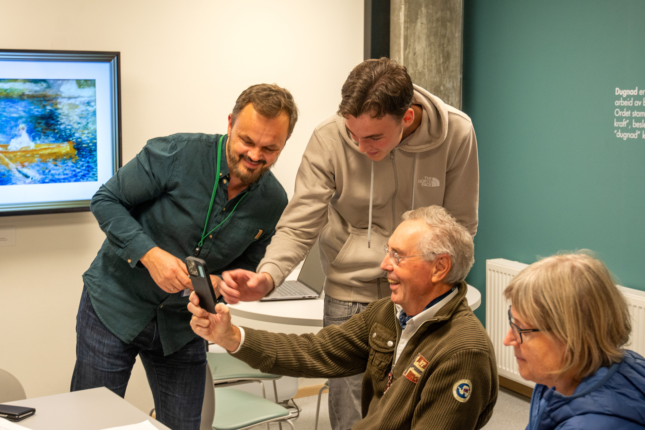 Vi kan imidlertid ikke hjelpe deg med kjøp/reparasjon av maskin eller installasjon av programvare, og heller ikke med utfylling av søknader eller skjemaer fra banken, Nav, skatteetaten eller UDI.
